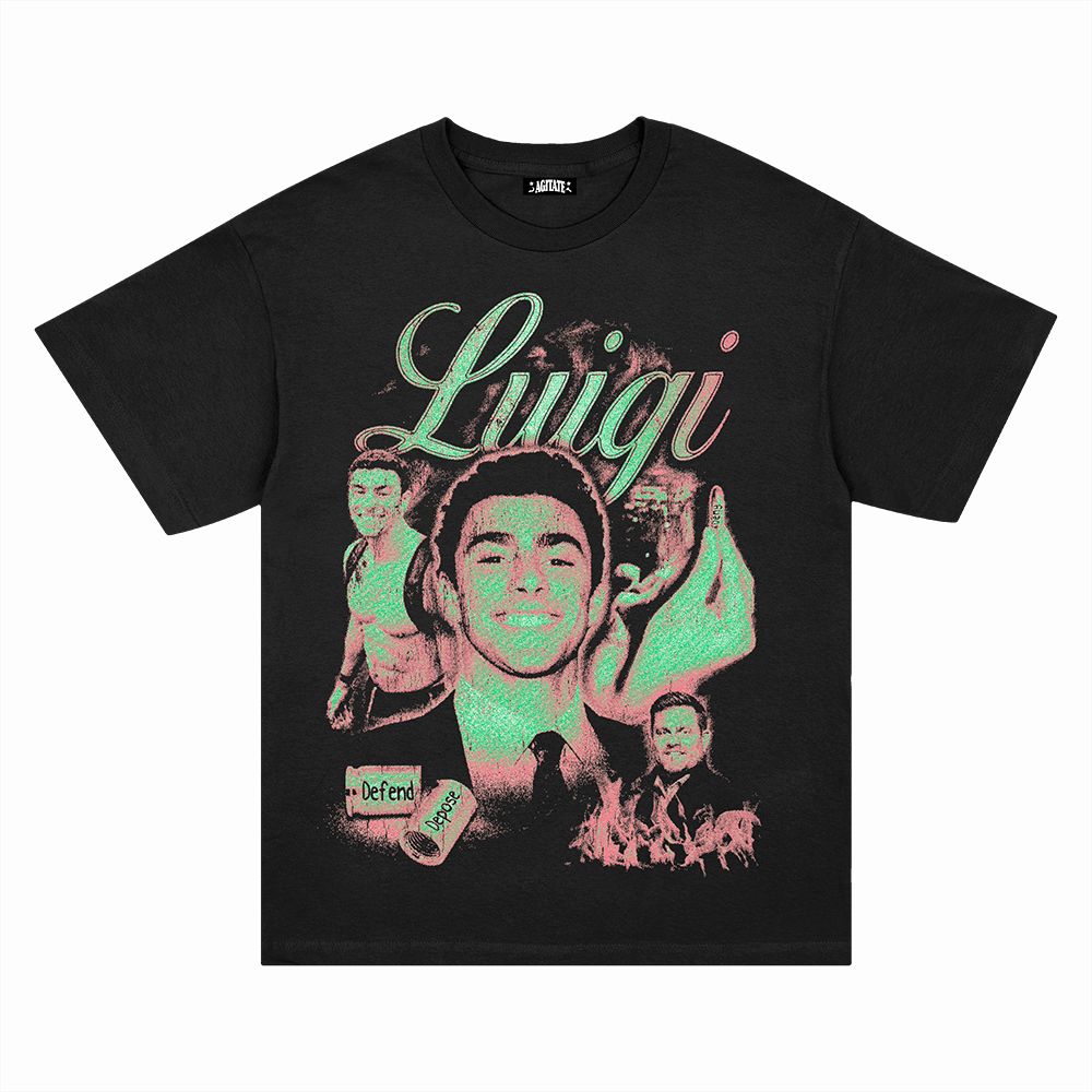 Printed on a premium oversized wash dyed black shirt. Moderate thickness.